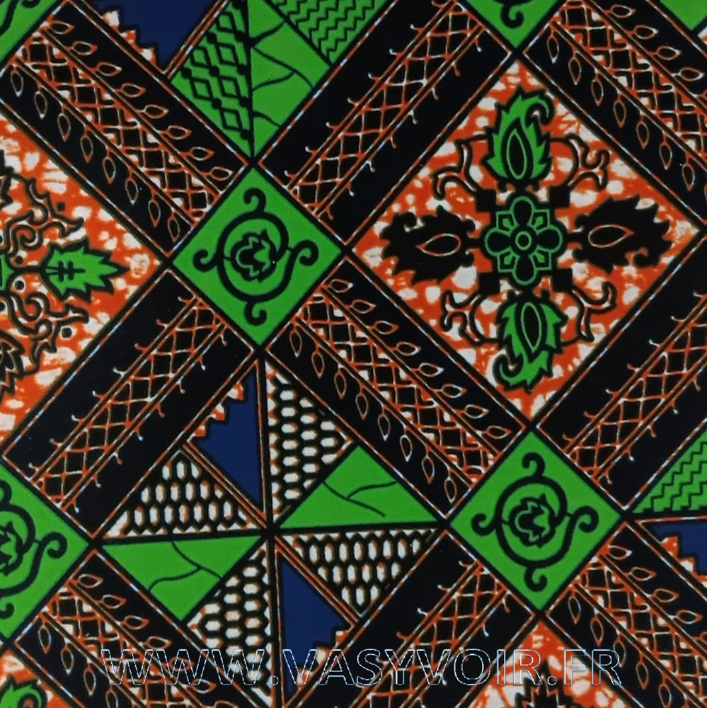 Tissu Wax Africain. Le complet d’une longueur de 6 yards soit 5 ,48 mètres et de largeur 48 pouces soit 1,21 mètres.